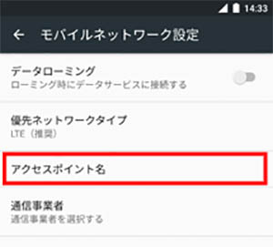 STEP3:「モバイルネットワーク」の「アクセスポイント名(APN)」を選択